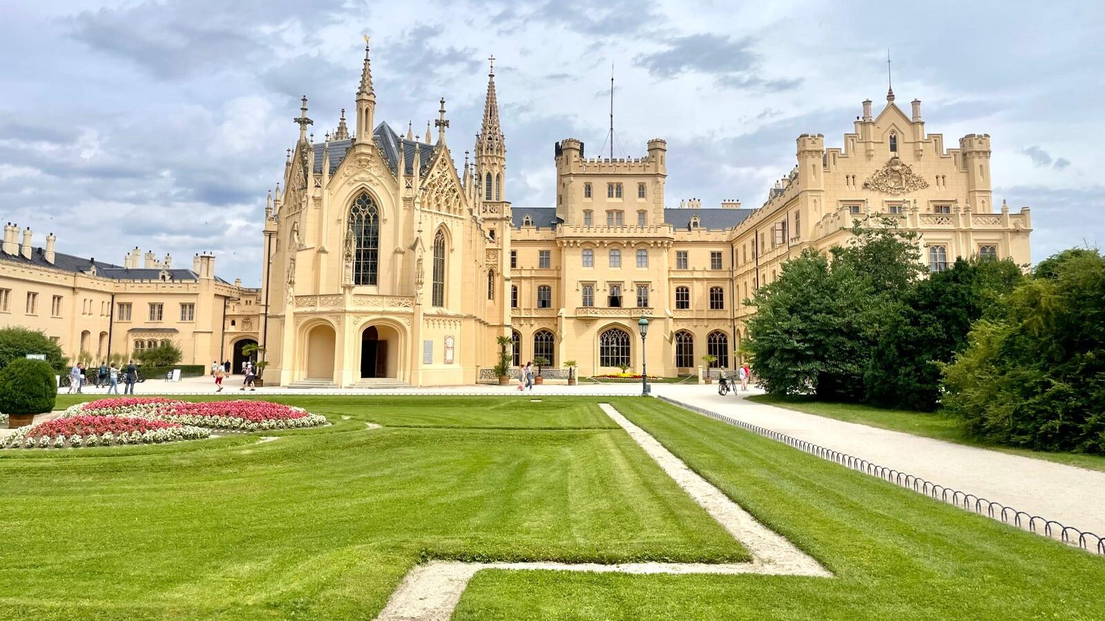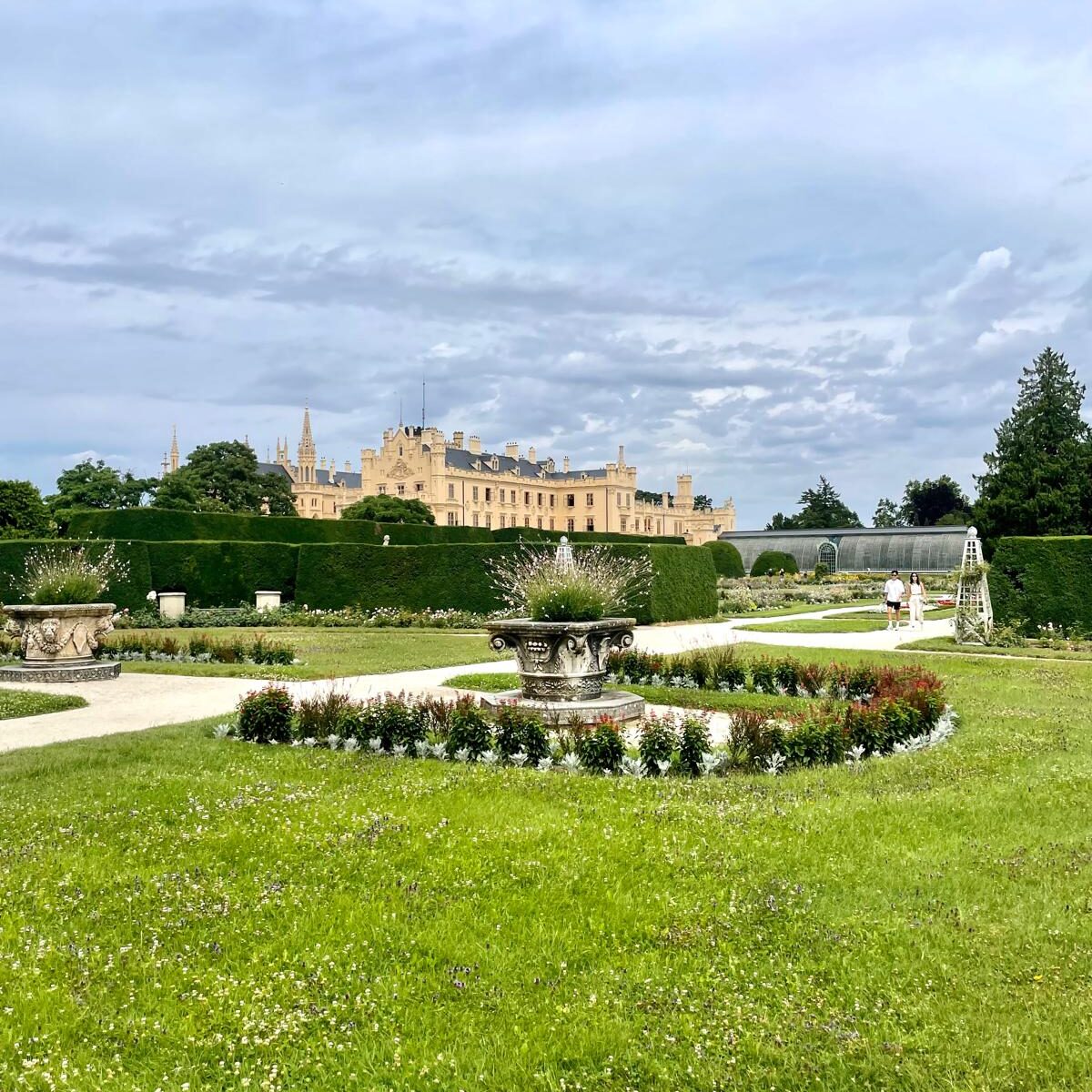 Další den jsme vyrazili k Zámku Lednice, který patří mezi nejkrásnější památky v Česku a je součástí rozsáhlého Lednicko-valtického areálu zapsaného na seznamu UNESCO. Velkým plusem pro nás bylo, že do zámeckého parku mohou i psi — stačí je mít na vodítku.