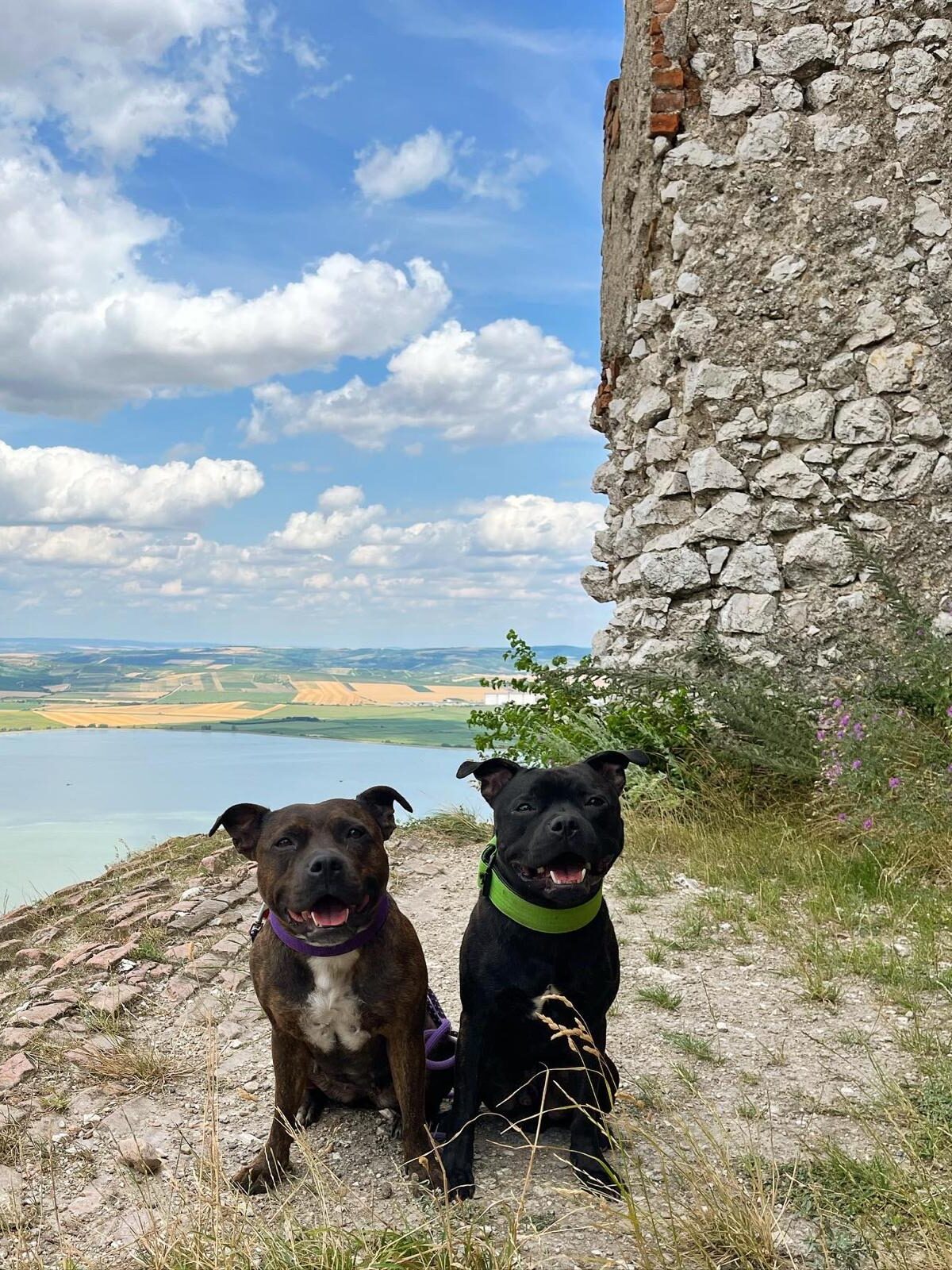 Jedním z nejhezčích výletů byla návštěva zříceniny Děvičky, která se tyčí nad obcí Pavlov v oblasti Pálavy. Od parkoviště vede k hradu příjemná procházka lesem, která není náročná a zvládnou ji i rodiny se psy — ti sem mají vstup bez problémů povolen. U vstupu se vybírá symbolické vstupné kolem 50 Kč, které slouží na opravy a údržbu památky.