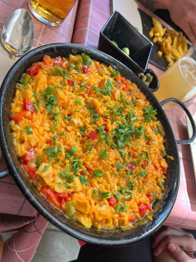 V den příletu jsme se ubytovali a vyrazili pěšky do centra. Na oběd jsme zvolili restauraci La Pachamama – Cocina Peruana. Burgery byly spíš průměrné. Paella s kuřecím masem (kterou jsme si s kamarádkou daly napůl) byla fajn volba.