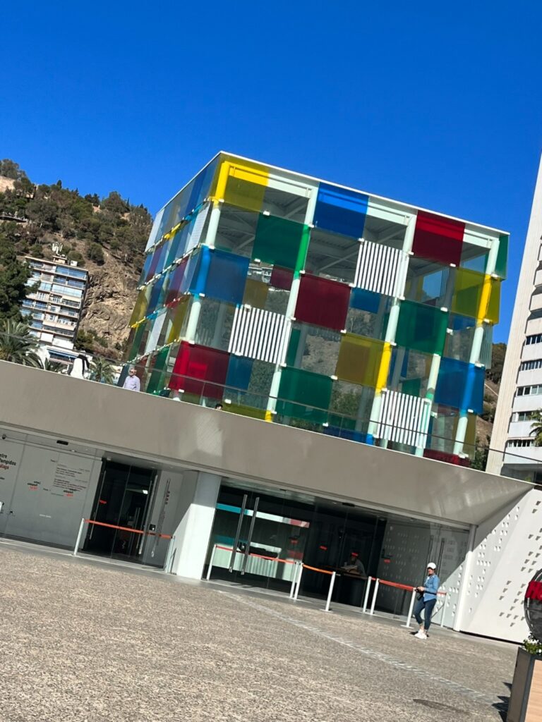 Po obědě jsme pokračovali přes centrum až do přístavu ke známé barevné kostce Centrum Pompidou. Uvnitř muzea jsme však nebyli. Přístav je opravdu pěkný, doporučujeme na klidnou odpolední procházku. Odtud jsme se prošli až k pláži Playa de la Malagueta, která je od centra krásně dostupná pěšky. Jedná se o dlouhou písečnou městskou pláž lemovanou promenádou a nachází zde i venkovní sportoviště.