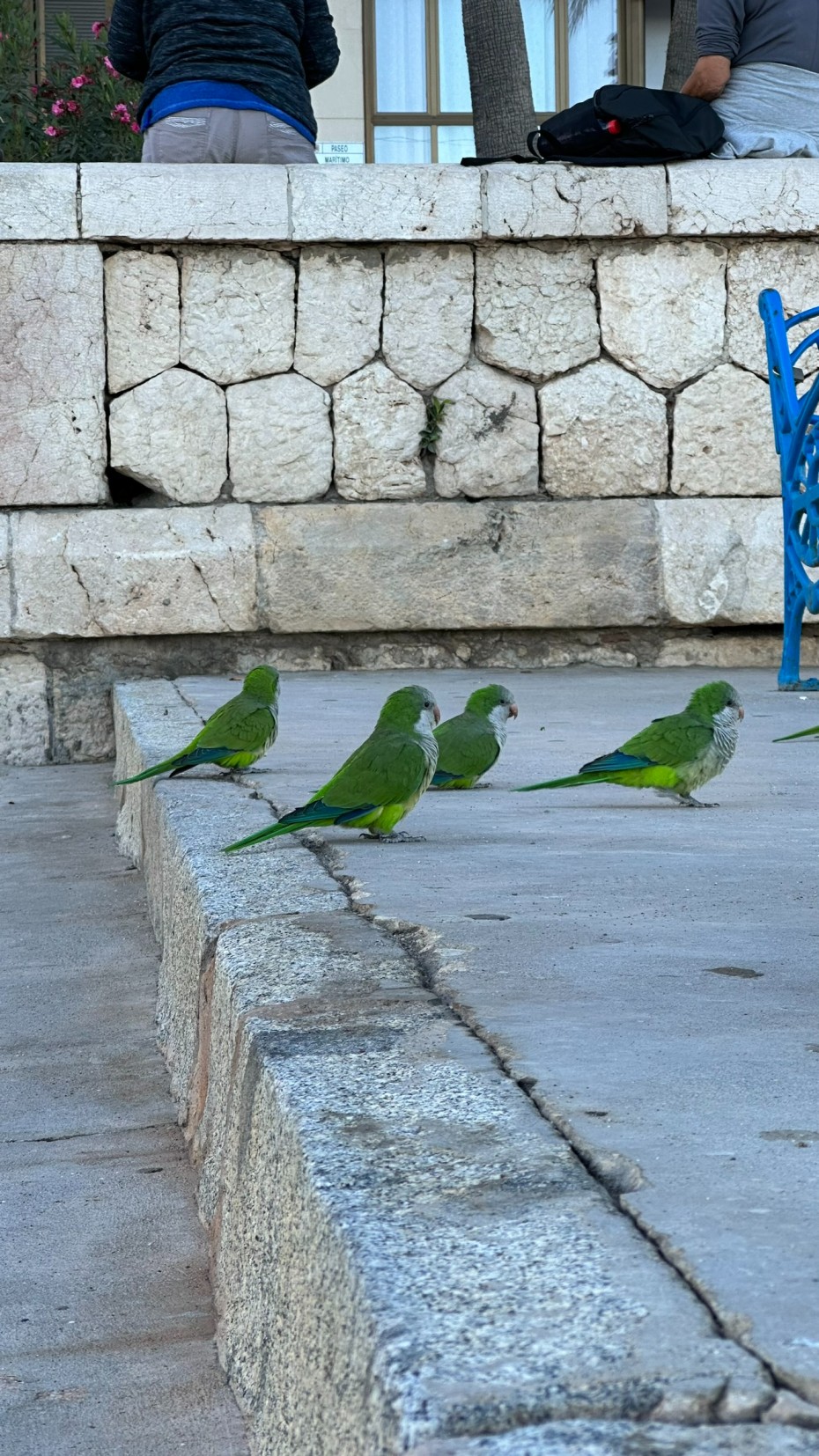 - papoušci na travnatých plochách podél pláže a v korunách stromů (místní obdoba holubů)