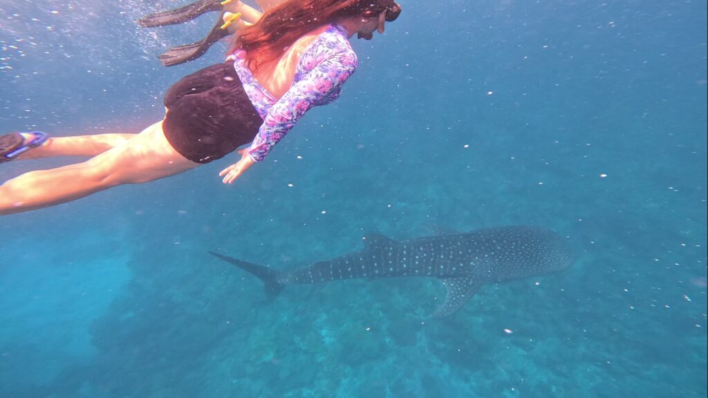 Výlet za žralokem obrovským byl pro nás nejnáročnější, ale zároveň nezapomenutelný. Čekala nás dlouhá cesta přes oceán, bouřka s obrovskými vlnami i fyzicky náročné plavání. Navíc není vůbec jisté, že žraloka skutečně uvidíte, takže jsme byli připraveni i na variantu, že budeme mít smůlu. Vidět whalesharka byl náš sen a opravdu moc jsme si to přáli.