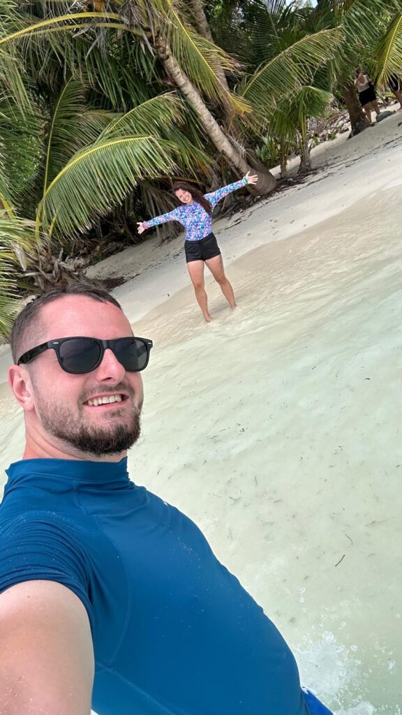 Poté jsme pokračovali na tzv. sandbank — malý písečný ostrůvek uprostřed oceánu, který se v mnoha případech objevuje jen při odlivu a vypadá jako z pohlednice. Oba jsme se shodli, že sandbank byl jeden z nejkouzelnějších a nejhezčích míst, kde jsme kdy byli – a o to větší kouzlo tento moment má ve chvíli, kdy si člověk uvědomí, že sandbank může během jedné noci ihned zmizet.