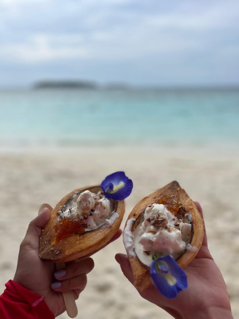 Poslední výlet byl věnovaný poznávání lokálních ostrovů a maledivského života mimo turistické resorty. Navštívili jsme ostrovy Felidhoo, Keyodhoo a Thinadhoo, ochutnali místní kuchyni, zmrzlinu, zkoušeli rozlousknout kokos a šnorchlovali u vraku lodi.